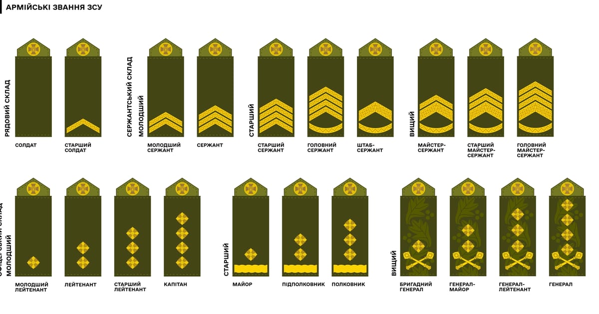 Молодший офіцерський склад: молодший лейтенант;; лейтенант;; старший лейтенант;; капітан. Старший офіцерський склад: майор;; підполковник; …