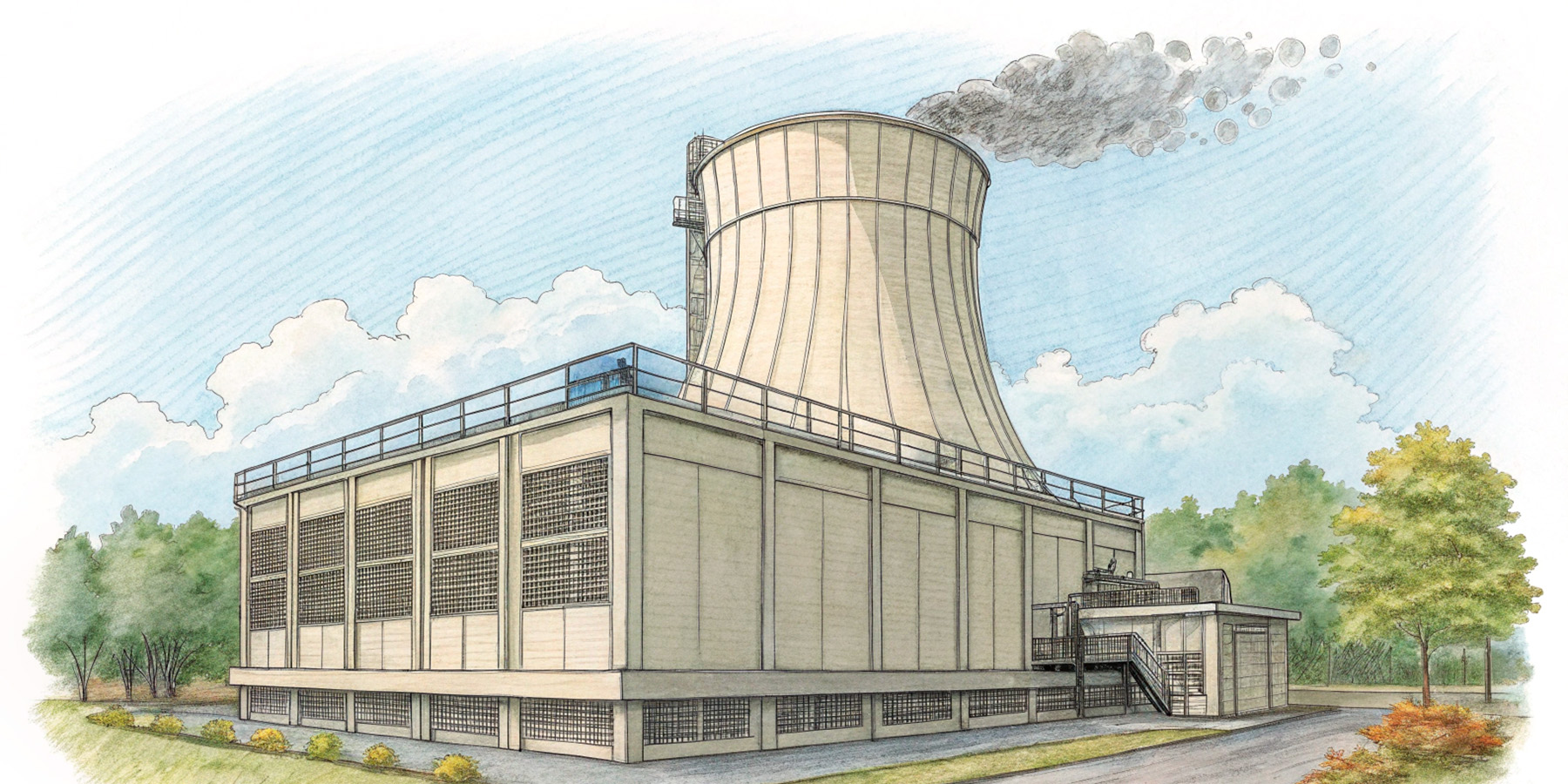 Це градирні і вони відіграють ключову роль у функціонуванні АЕС. Вони забезпечують ефективне і безпечне охолодження систем, що використовують ядерну енергію. Ці споруди допомагають підтримувати оптимальне температурне середовище, захищаючи обладнання та запобігаючи аварійним ситуаціям.