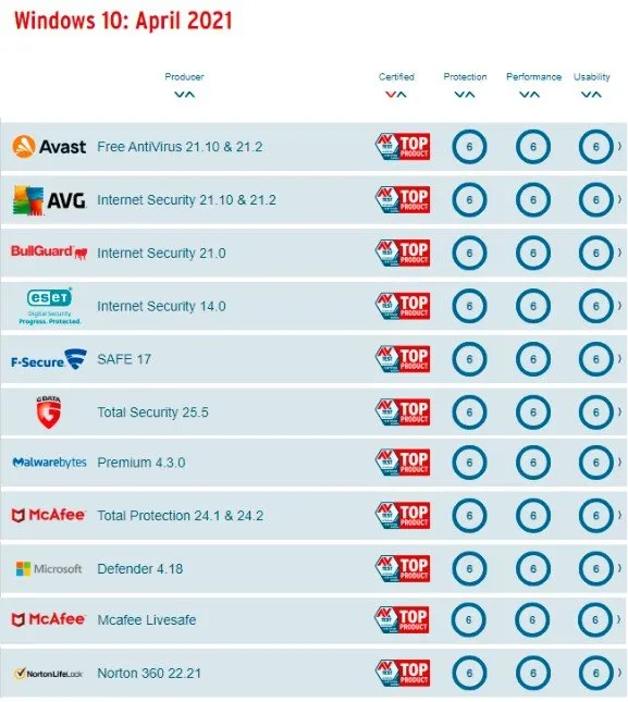 | 1 | AVG Internet Security | 9.7 / 10 |